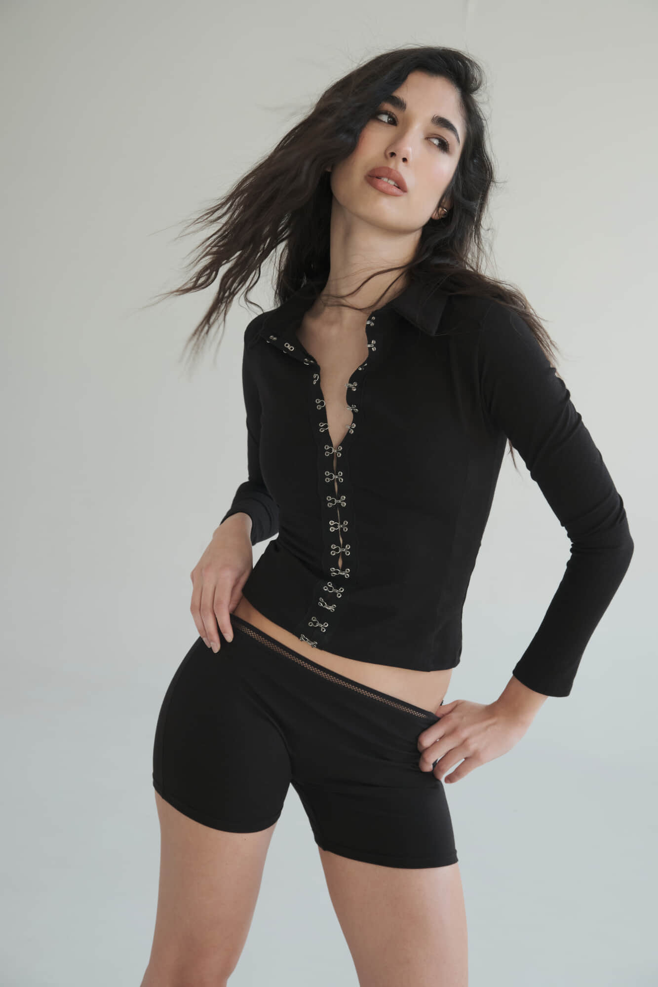 CAMISA EN LYCRA DE ALGODON CON CIERRE DE CINTA HILERA DE GANCHOS